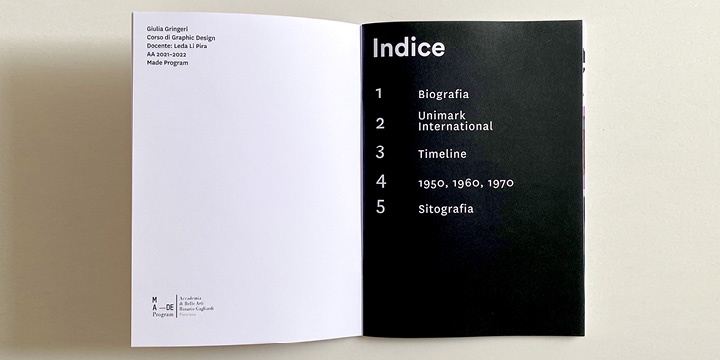 The students developed a publishing project based on historical and stylistic research on one of the iconic figures of Italian graphic design.